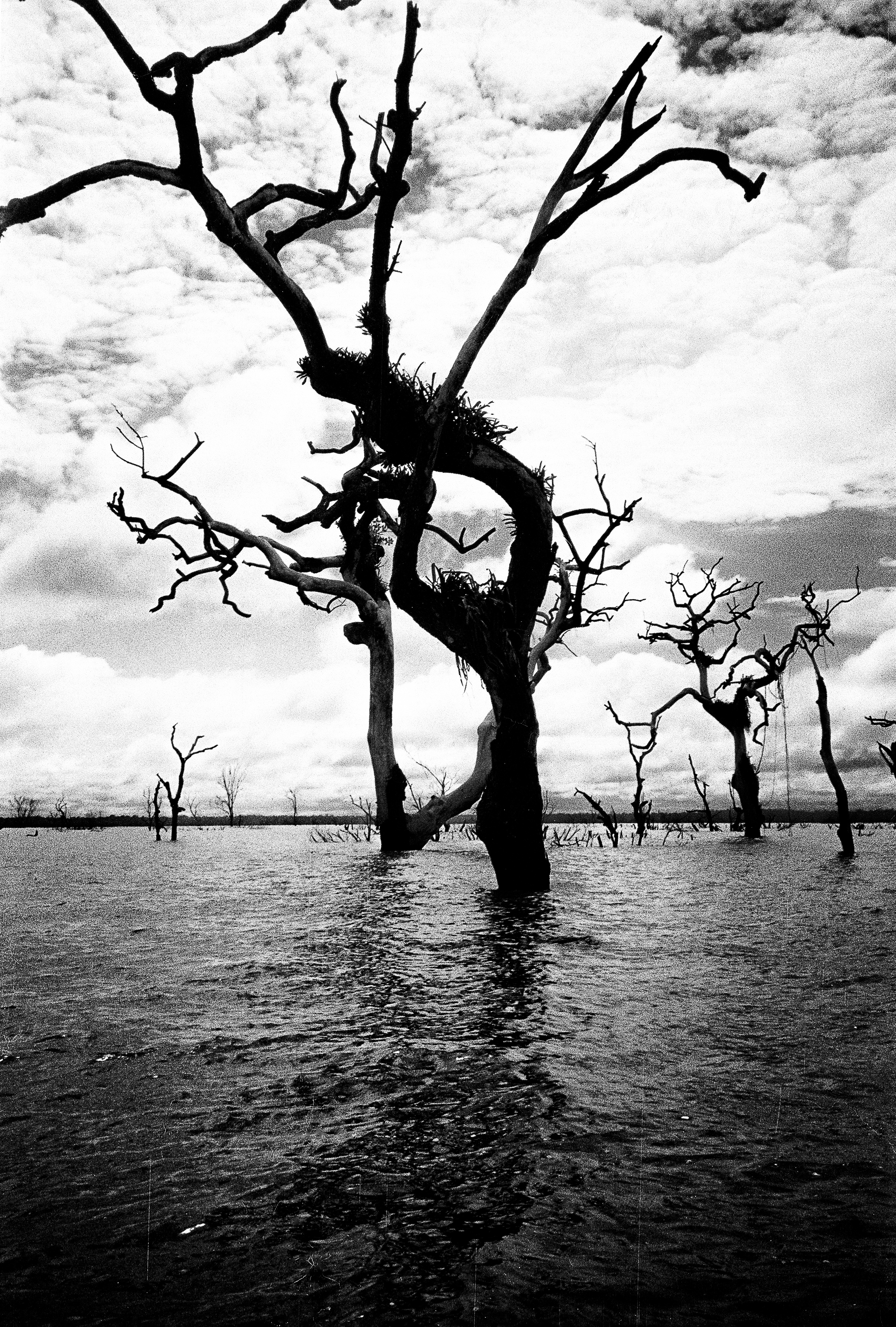 Dead trees after the closure of the Tocantins-Pará state dam, Brazil at the Tucuruí Hydroelectric Plant in 1984.